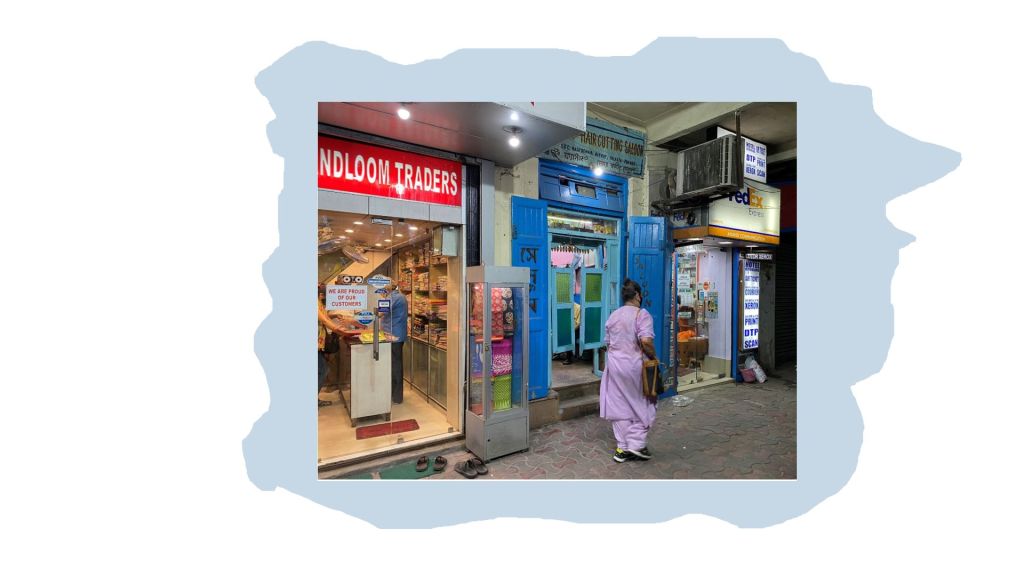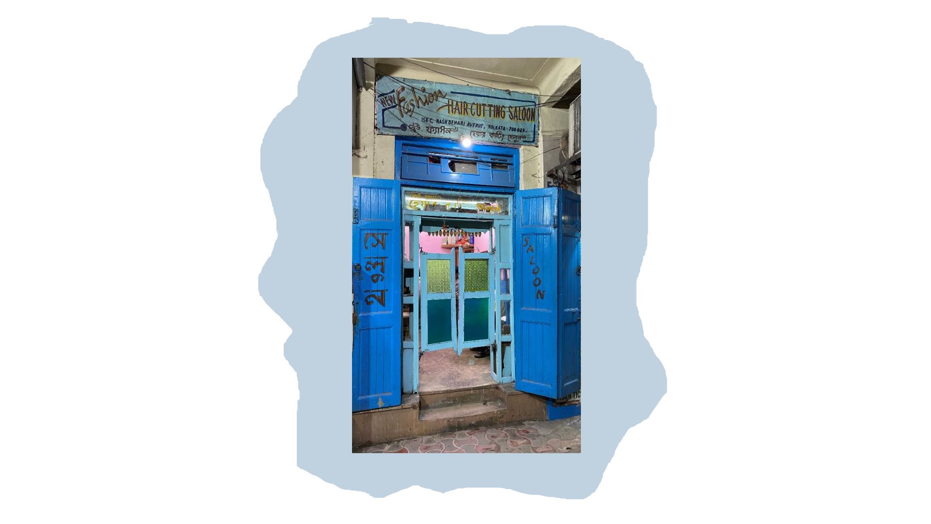 And then seventy odd years later, I saw the shop again the other day. It was located under a patio supported by strong pillars. I have no recollection of the patio, though I am reasonably sure that the patio is at least as old as the shop. I looked up and saw what looked like a residential flat opening into the patio. There was a french window and two other smaller ones through which light poured out indicating the existence of living beings inside. I have no idea who live there now. Do they smile? Do they cry? Do they sing lullabies for their babies. I suppose I shall never know if their great grandfathers lived there during my innocent days as a child. I am not sure why, but I am curious about the occupants of the lighted flat facing the patio. No one was visible of course. In the meantime, I was being watched silently, I felt, through the frosted glass door of the barber shop. It felt eerie sort of. The door had coloured scribbling on it and the light that shone inside should have been brighter. At least as bright as the lights in the patio apartment. The dim lights in the shop wore an accusing expression it seemed, pulling me up for not keeping track of its passage through time. It used to be called Avenue Hair Dressing Saloon I think. But no longer so. Its name has changed, but look wise it hasn’t changed an epsilon bit. The bald proprietor cannot exist anymore. Nor Big Fagin. I may well be the only person amongst the ones present that day who still lives. I have no idea who runs the shop now. It stands diagonally across the spot where Kamala Bastralaya, the tailor’s shop I told you about sometime in the past used to be. As you know, like the bald barber, the tall tailor no longer exists either. But unlike the tailor’s shop, the barber’s shop still stands under the patio.